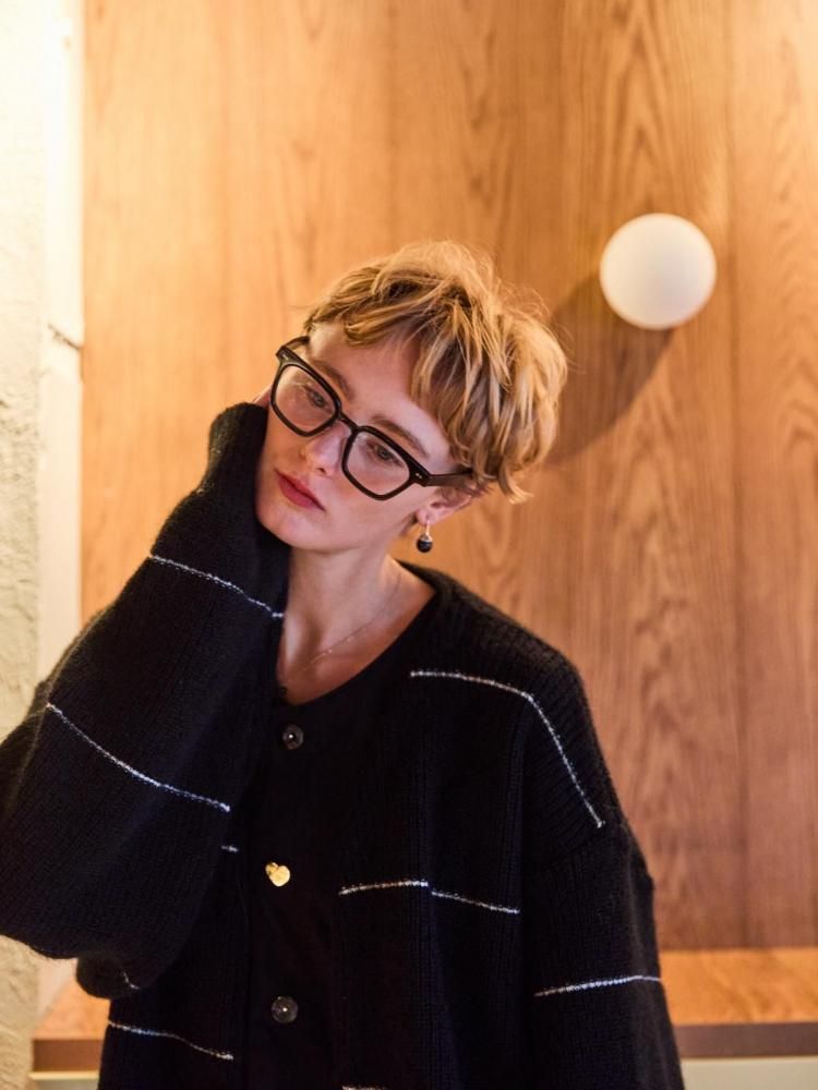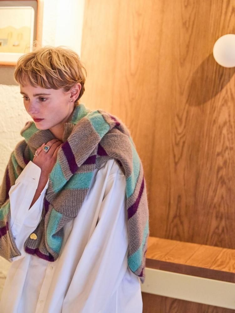 キッドモヘアを贅沢に55%使用し、ふんわりとした軽さと温もりを兼ね備えた一枚。