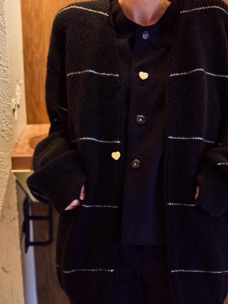 フロントには、さりげなく個性を添えるオリジナルの真鍮ハートボタンをあしらい、ディテールまでこだわり抜いた一着です。